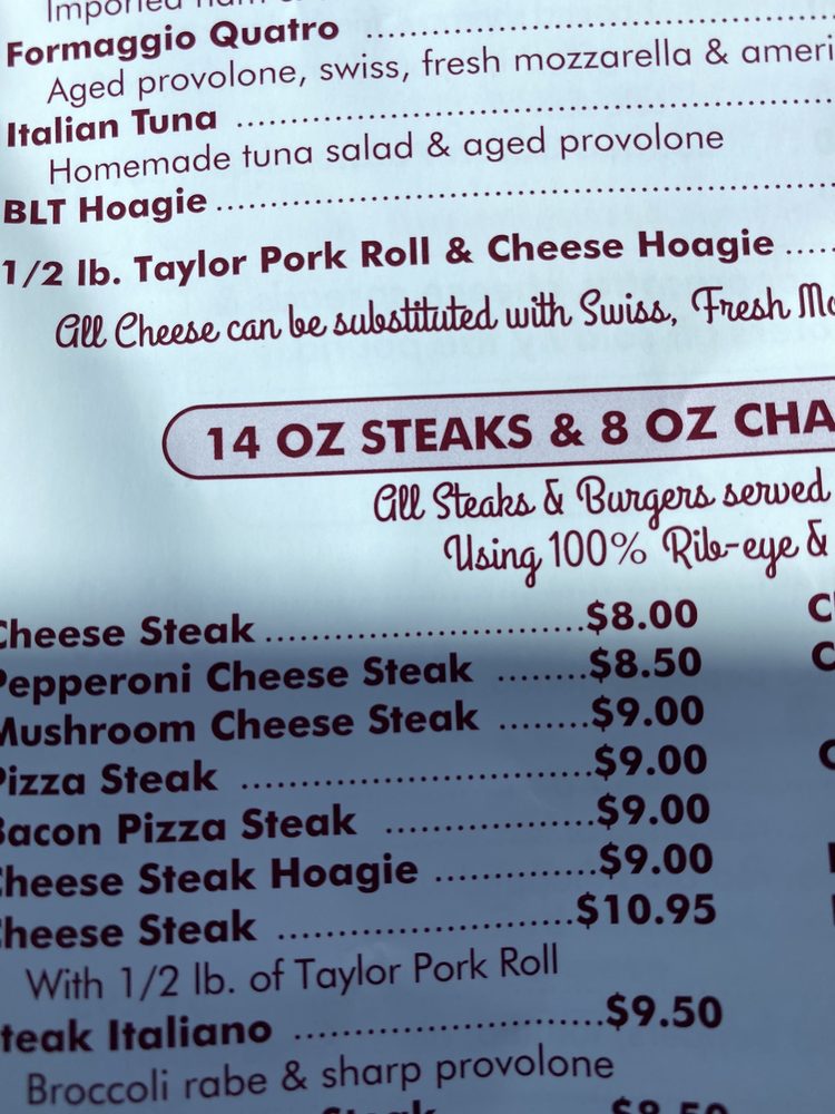A / lb sausage, a / lb steak, and a / lb burger with mozzarella cheese.